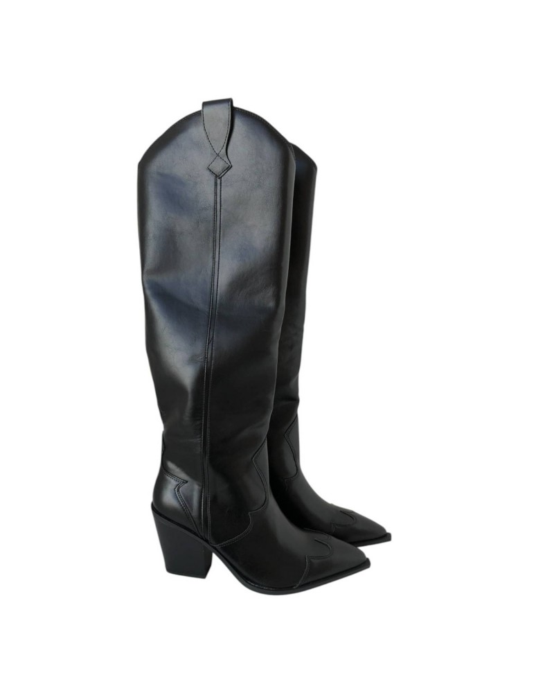 Inspírate en el estilo del lejano oeste con esta bota cowboy de caña alta. Su diseño combina tendencia y personalidad, con una caña de 39 cm que estiliza la pierna y un tacón de 8 cm que aporta altura y elegancia sin renunciar a la comodidad. Fabricadas con materiales de calidad, destacan por sus costuras decorativas y su punta ligeramente afilada, fiel al auténtico espíritu cowboy. Perfectas para combinar con vestidos, faldas o jeans y crear looks atrevidos y con carácter en cualquier ocasión.