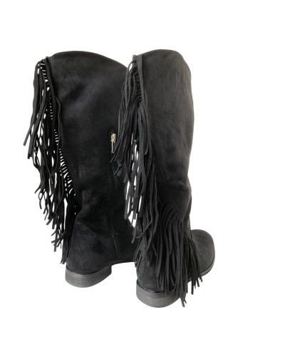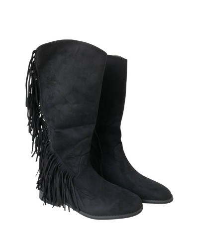 Inspirada en el espíritu del lejano oeste, esta bota estilo cowboy combina el encanto clásico con un toque moderno. Confeccionada en ante sintético de textura ultrasuave, presenta flecos laterales que aportan movimiento y personalidad. La cremallera lateral a media altura facilita el calce,. Ideal para looks boho-chic, festivales o para dar un aire atrevido a tus outfits urbanos.