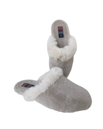 Zapatillas Gema García con tira de pelo suave que aporta un toque elegante y acogedor. Su piso antideslizante garantiza una pisada segura, mientras que la agradable suavidad de sus materiales ofrece máximo confort en casa.