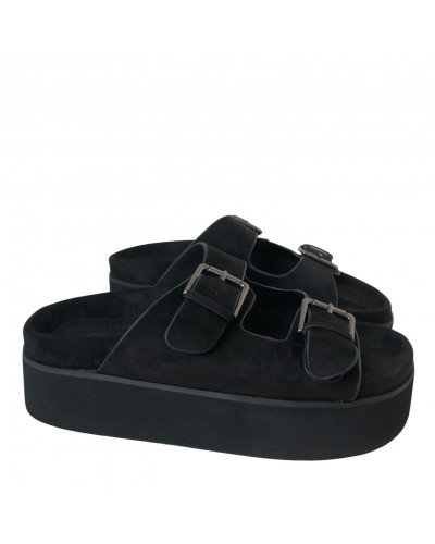 Las sandalias Corina estilo zueco combinan diseño actual y máxima comodidad. Fabricadas en material sintético resistente, presentan pala ancha con hebillas metálicas ajustables que permiten adaptar el calce al pie. Incorporan plataforma de 5 cm que aporta altura con mayor estabilidad y comodidad en la pisada. Su plantilla anatómica favorece el confort durante el uso prolongado, mientras que la suela ligera y antideslizante garantiza buena adherencia. Un modelo versátil, ideal para looks casuales y de temporada.