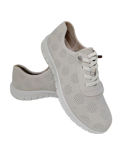 Zapatilla estilo casual con cordones elásticos que facilitan calzar y ajustar al pie sin esfuerzo. Cuenta con piso ligero para máxima comodidad al caminar y plantillas extraíbles, ideales para higiene o para usar plantillas personalizadas.