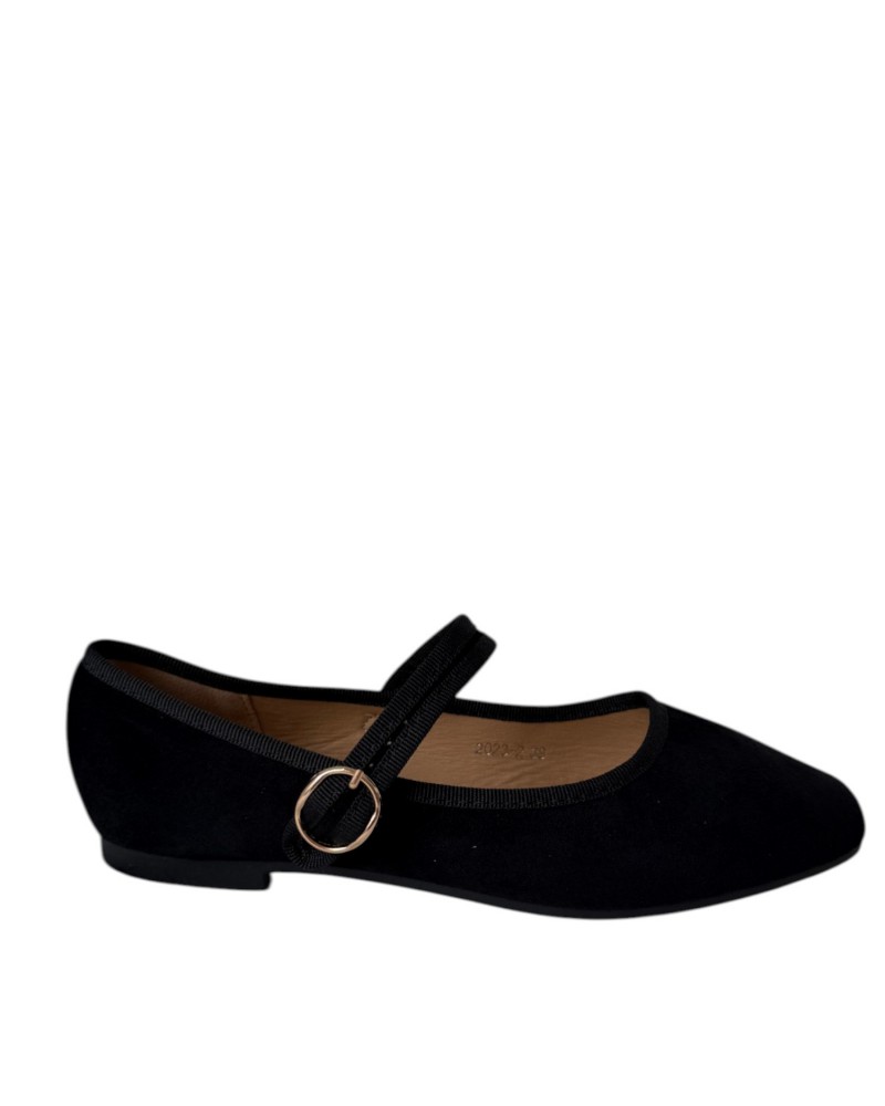 Bailarina plana de antelina con hebilla, elegante y cómoda para el día a día. Su diseño clásico y sofisticado aporta estilo sin renunciar al confort, mientras que la hebilla añade un detalle refinado y versátil. Perfecta para combinar con cualquier look casual o semiformal, esta bailarina es un imprescindible en tu colección de calzado, ofreciendo suavidad, ajuste seguro y comodidad durante todo el día.
