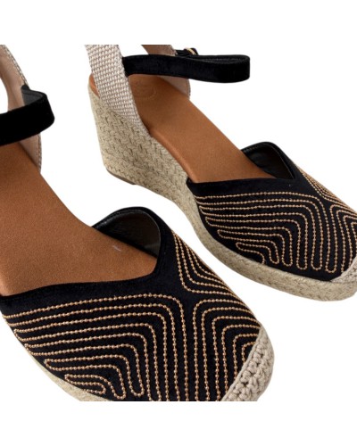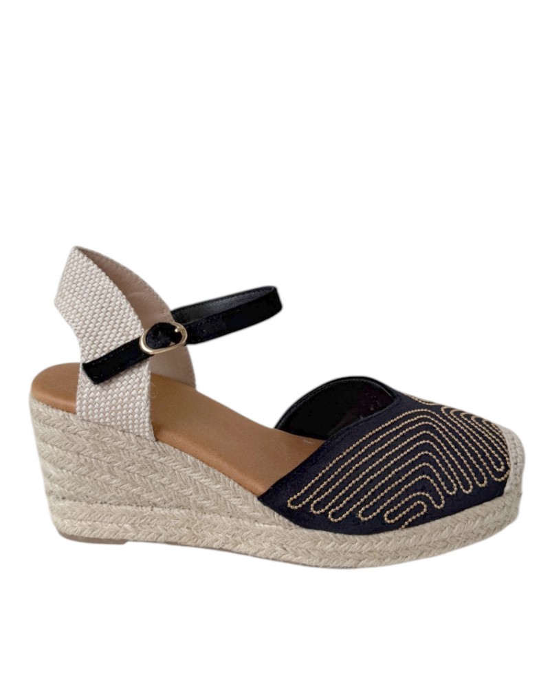 Zapatillas con cuña de esparto de 8 cm, con puntera y detalles de tachas que aportan un toque moderno y sofisticado. Su diseño combina estilo urbano y veraniego, ofreciendo comodidad y estabilidad durante todo el día. Ideales para looks casuales o semiformal, estas zapatillas son perfectas para quienes buscan tendencia, frescura y personalidad en cada paso.