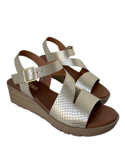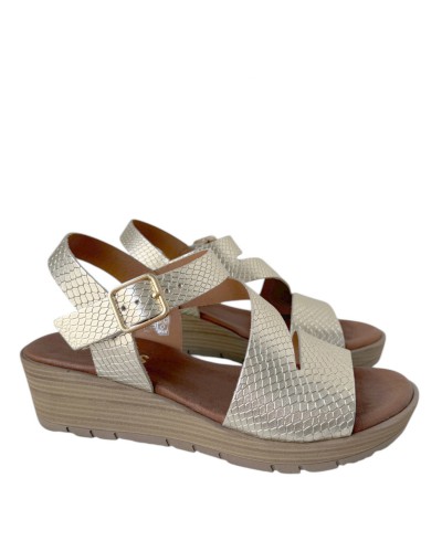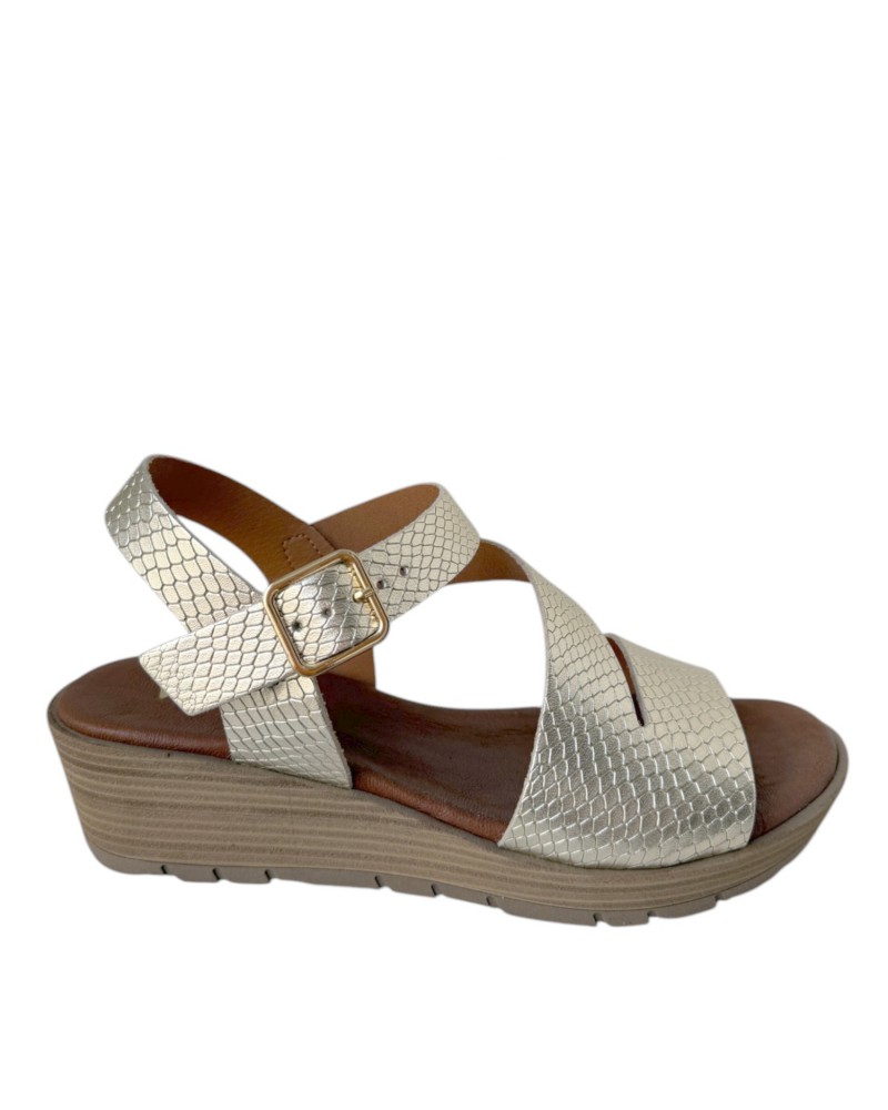Sandalia de cuña con 5 cm de altura y plataforma de 2 cm, diseñada para ofrecer mayor comodidad sin renunciar al estilo. Su diseño ligero y equilibrado ayuda a repartir mejor el peso del pie, proporcionando una pisada más estable y confortable durante todo el día. Incorpora cierre ajustable para una mejor sujeción y adaptación al pie. Versátil y fácil de combinar, es el calzado perfecto para looks de verano, desde outfits casuales hasta conjuntos más arreglados. Ideal para pasear, viajar o disfrutar del día con comodidad y elegancia.