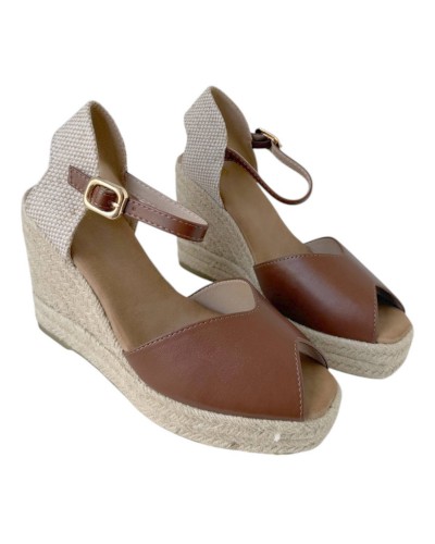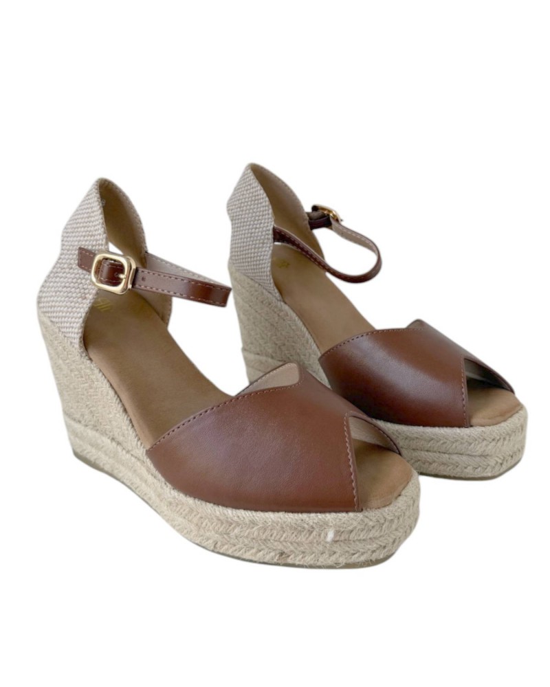 Sandalia con cuña de esparto de 10 cm que combina altura y estilo con un aire veraniego irresistible. Incorpora una plataforma que aporta mayor comodidad y estabilidad en cada paso. Su diseño con puntera descubierta deja ver el pie de forma sutil, aportando frescura y feminidad. Perfecta para completar looks desenfadados o más sofisticados en los días de calor.