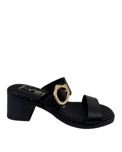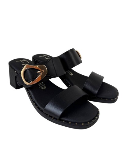 ZUECO TACON PIEL TACHAS HEBILLA