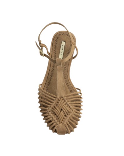 La sandalia Corina plana de estilo cangrejera reinterpreta un clásico con un enfoque sofisticado y contemporáneo. Su diseño de tiras entrelazadas envuelve el pie con delicadeza, aportando sujeción y un aire refinado que eleva cualquier look diario.